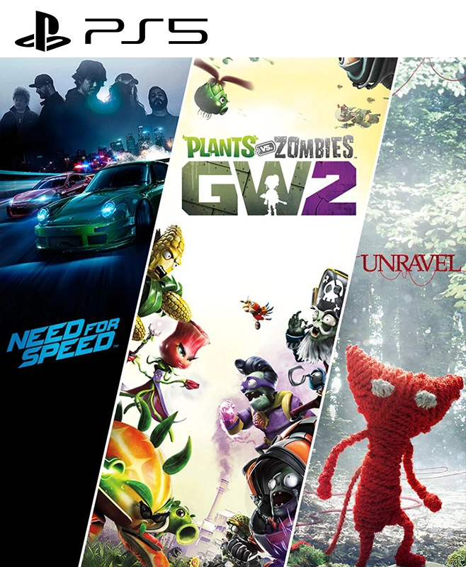 3 JUEGOS EN 1 Need for Speed + Plants vs. Zombies Garden Warfare 2 + Unravel PS5