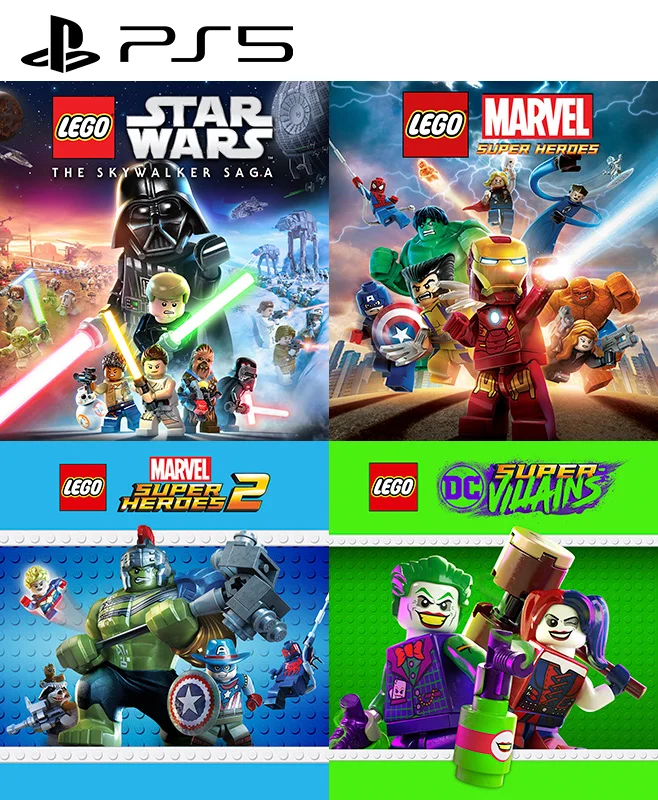 4 Juegos en 1 LEGO Star Wars La saga de Skywalker mas LEGO Marvel Super Heroes mas LEGO Marvel Super Heroes 2 mas LEGO DC Super Villains PS5